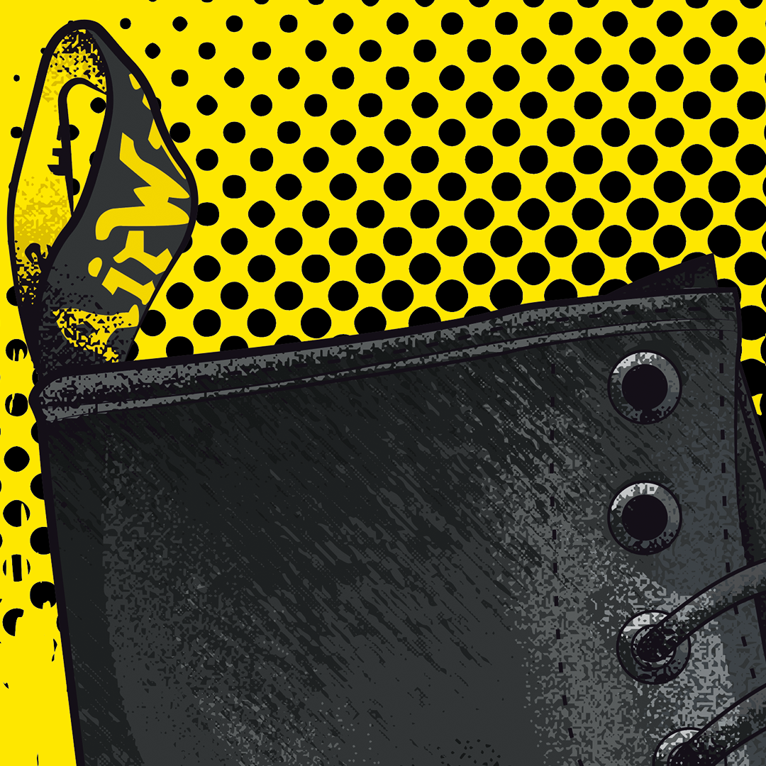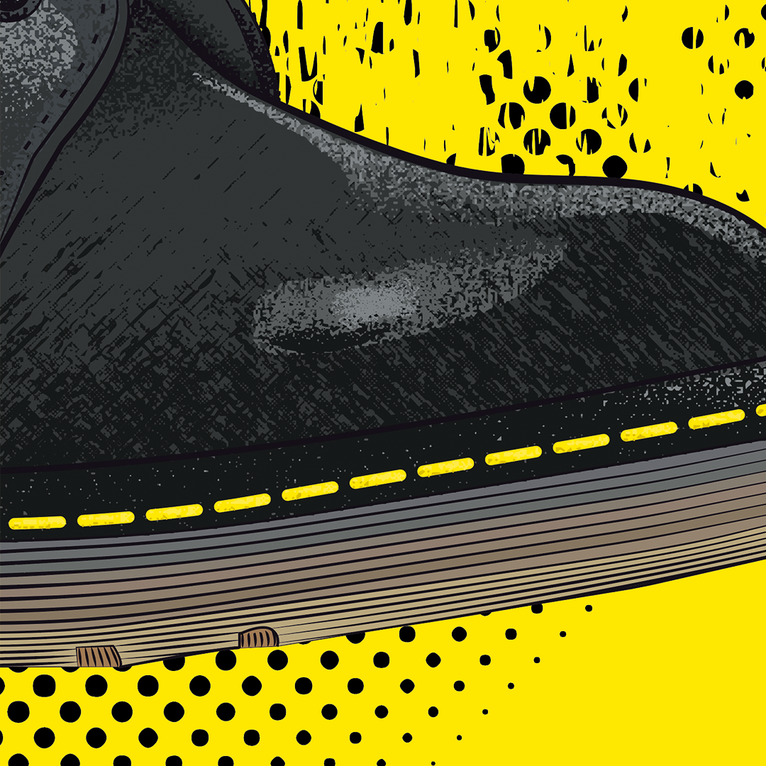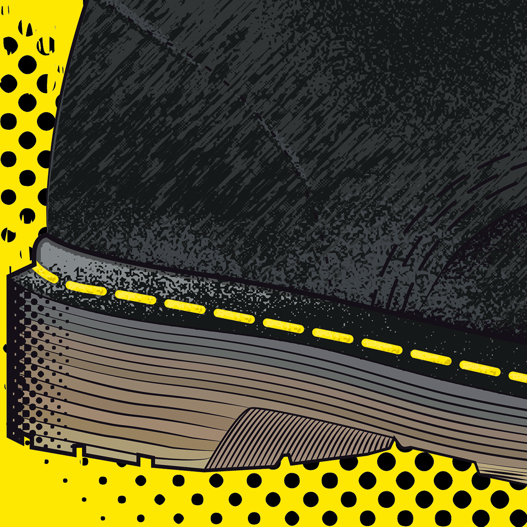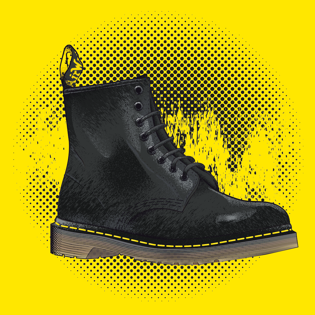 Advert and illustrations of Dr Martens classic 1460 boot.